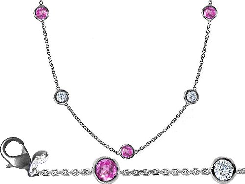 14k White Gold Plated Sterling Silver 16 inch Gems By The Yard Necklace with White Quartz and Created Ruby crafted in 14k White Gold Plated Silver Dimensions: Width: 6.00 mm Length: 406.00 mm5 Stones 1.75 Carats Round 4mm Color: Colorless Clarity: Clean, 5 Stones 1.75 Carats 4mm Created Pink Sapphire Color: Pink Clarity: Clean FREE GIFT BAG! FREE GIFT CARD! Finejewelers Style Number: 303186. ...Read more Details